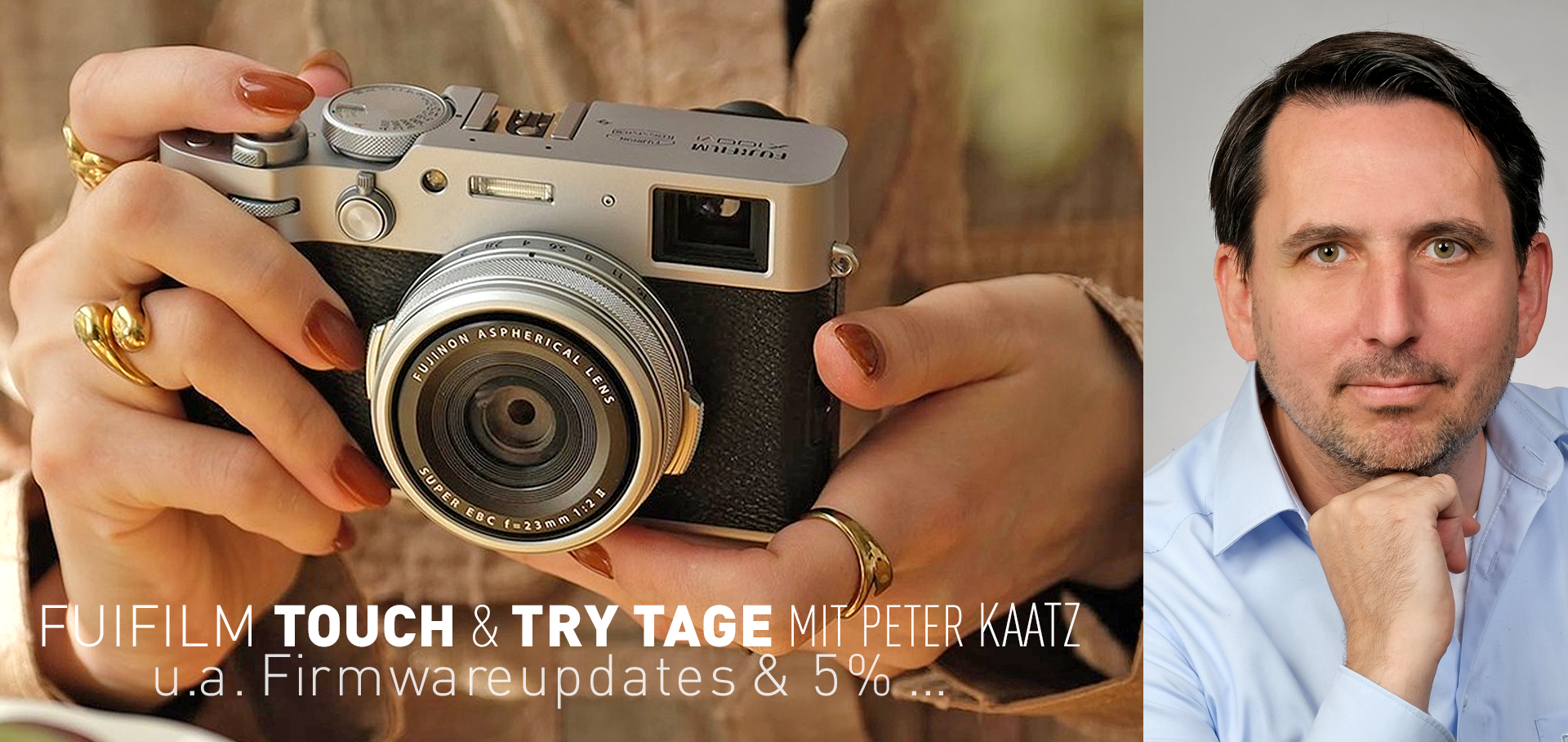 Am Freitag und Samstag den 6. und 7. Februar finden zwei Fujifilm Promotion-Days bei uns statt. Egal ob Ihre Kamera konfiguriert werden soll, oder es generelle Fragen zur Einstellungen von Fujifilm Kameras wie auch Objektiven gibt, Peter Kaatz nimmt sich die Zeit für Sie und hilft Ihnen, die richtige Kamera zu finden!